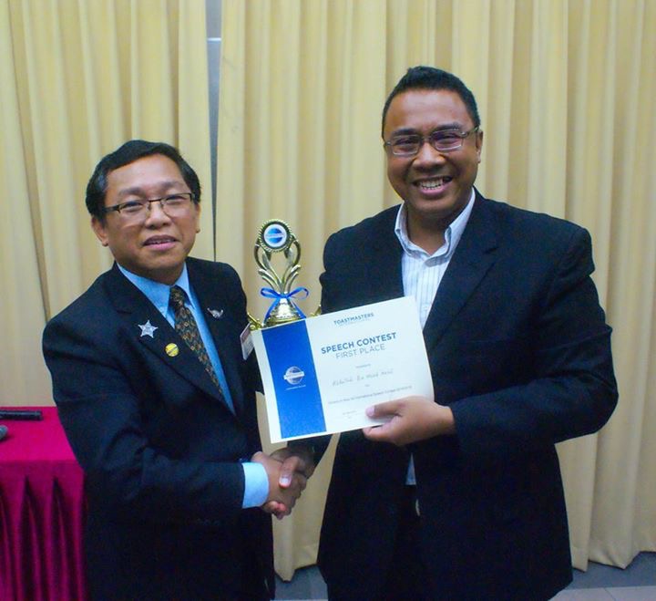 Champion, Area A2 Toastmasters International Speech Competition.By Dr Abdullah Mohd Nawi / April 6, 2015 Hello everyone. I recently won the Area A2 Toastmasters International Speech Competition held at the Cheshire Home, JB. Next is Division championship on the 18th of April.