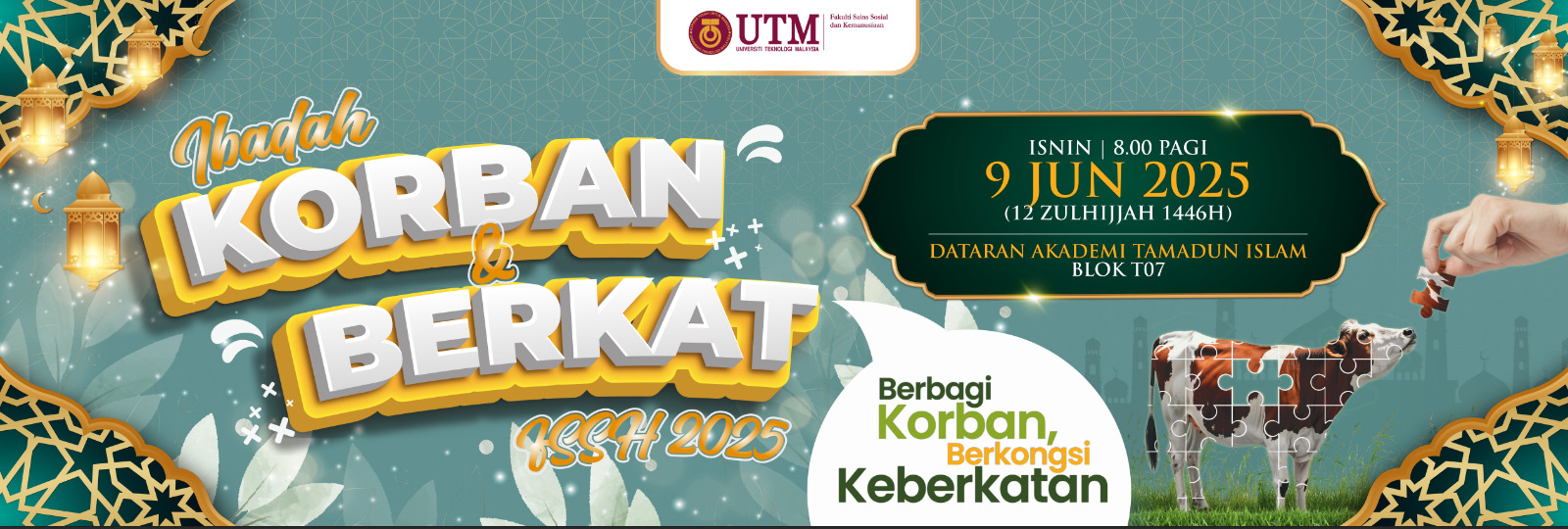 Tahun ini sekali lagi Fakulti Sains Sosial Dan Kemanusiaan telah menganjurkan Program Korban & Berkat FSSH 2025. Tahun lepas juga telah diadakan Program Korban & Berkat yang sama tetapi di lokasi yang berbeza. Tahun ini program dilaksanakan di Dataran Akademi Tamadun Islam UTM.