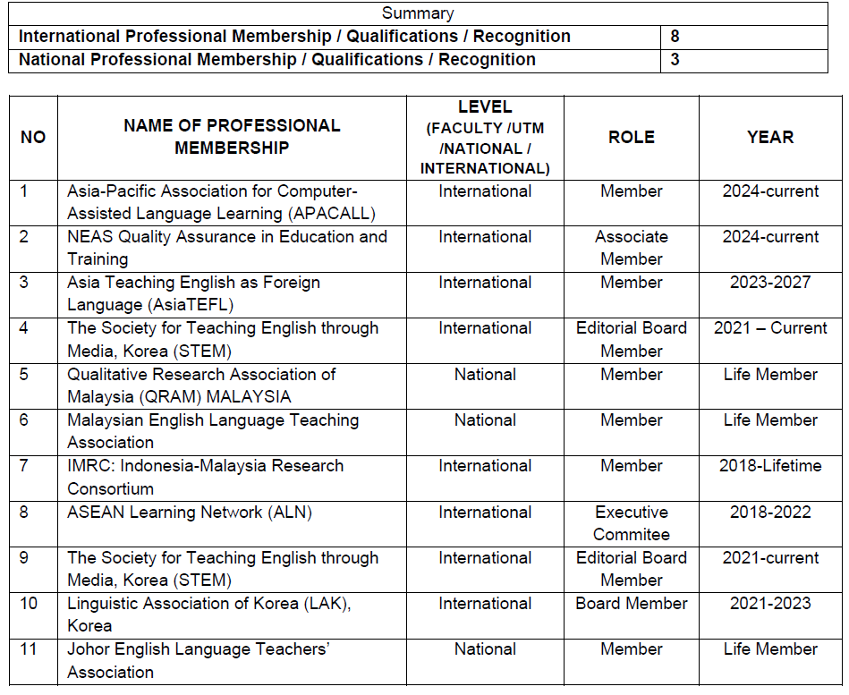 Professional Membership / Qualifications / Recognitions