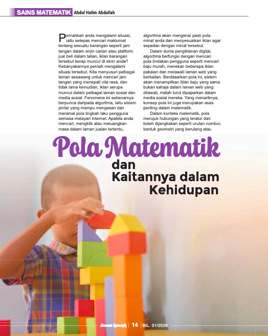 Terima kasih Dewan Kosmik (DBP) atas penerbitan makalah saya bertajuk “Pola Matematik dan Kaitannya dalam Kehidupan” dalam edisi Januari 2026.