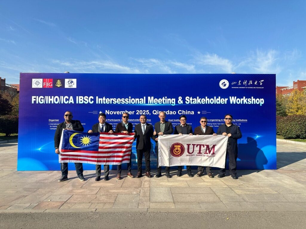 Qingdao, 14 Nov 2025 – Universiti Teknologi Malaysia (UTM) deepened its international partnerships through a courtesy visit to the College of Geodesy and Geomatics, Shandong University of Science and Technology (SDUST) in conjunction with the FIG/IHO/ICA IBSC Intersessional Meeting & Stakeholder Workshop 2025 from 9-14 November 2025 at Qingdao, China.