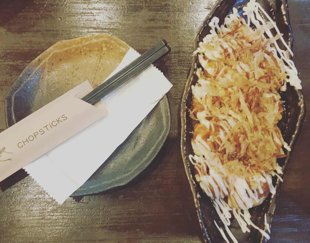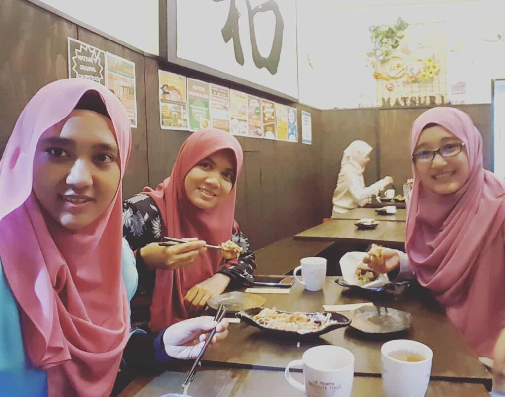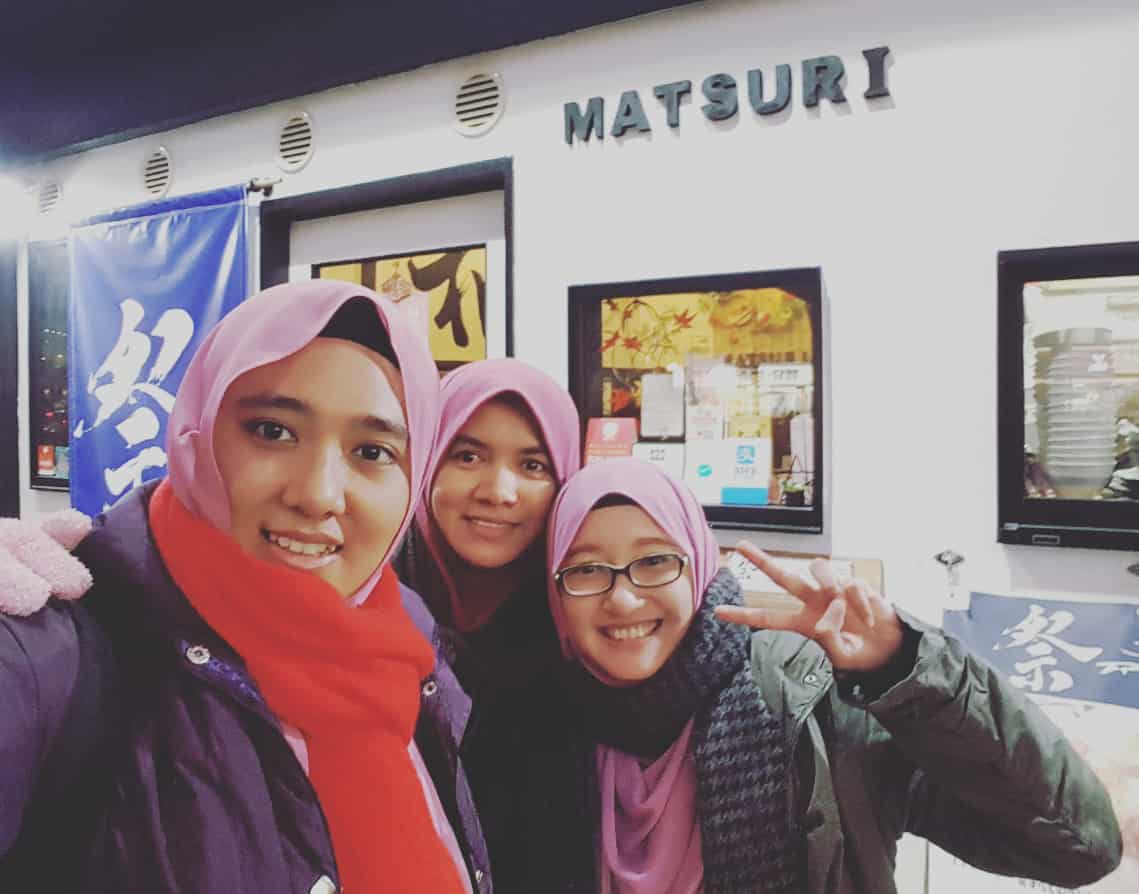 Selesai membentang dan bertukar kad nama bersama pembentang lain, kami hanya meneruskan perjalanan pulang ke AirBnb semula. Dalam perjalanan sempat kami singgah di restoran Matsuri, restoran halal untuk makan malam. Mochi dia ya Ampunn. Lembut dan sedap. Manis-manis buah. Kami order Okonomiyaki dan juga kek ikan. Sedap dimakan panas-panas terutama cuaca di sana memang sejuk sekitar 3 darjah celcius apabila menjelang malam.