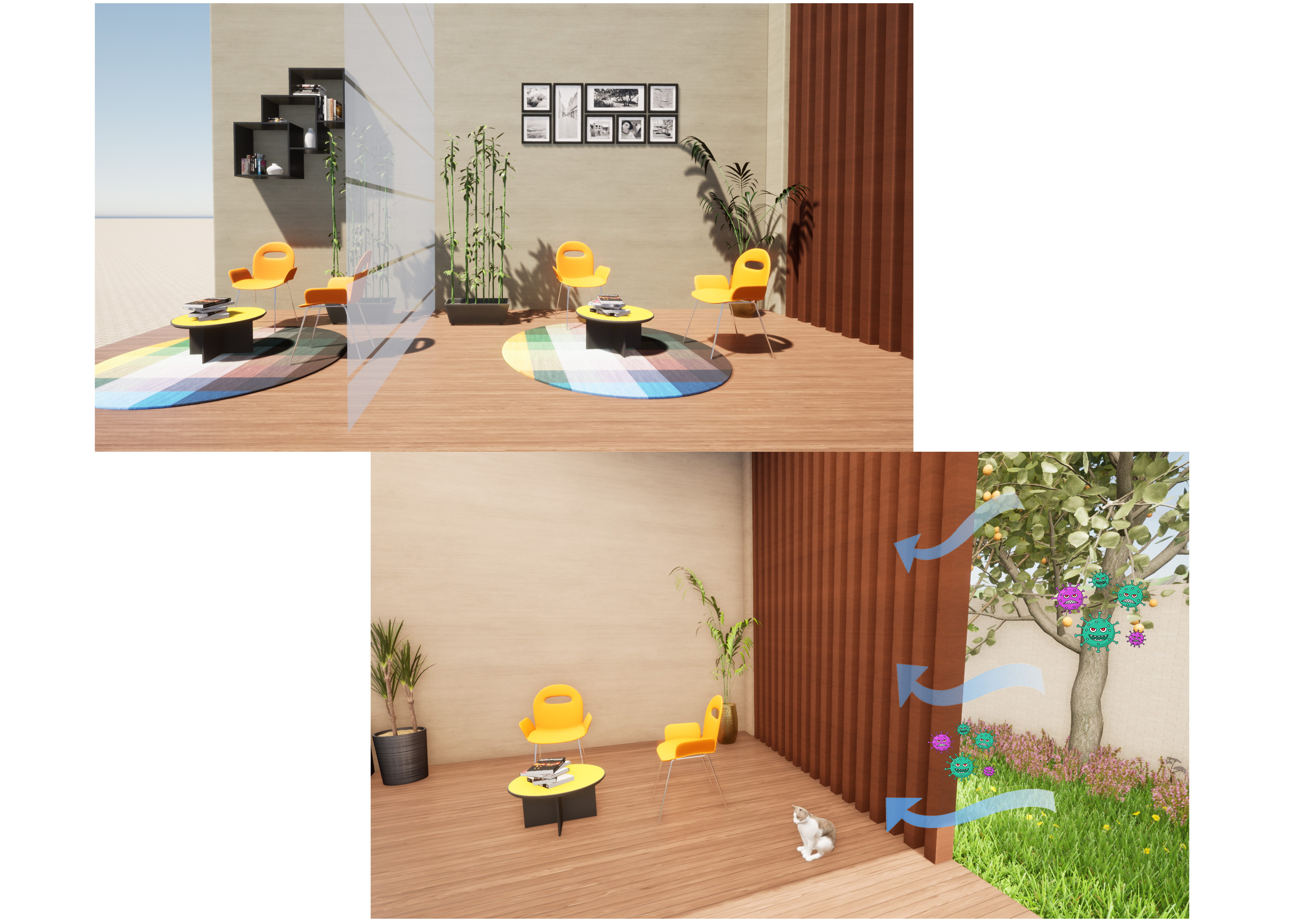 Architecture has an important role in supporting environmental comfort and adjusting health protocol rules due to the current global pandemic. Then, after returning to the ‘new normal’ we need to think about the good space, hygiene, health, and safety that need to be provided in a design for our comfort and our ability to live productively. We need to implement social distancing by giving space in every place, such as in public or private spaces. Maybe we can try to provide a semi-private space with natural air circulation from the windows and the ventilation, also the surrounding vegetation that has many benefits to environment related to world issues nowadays.