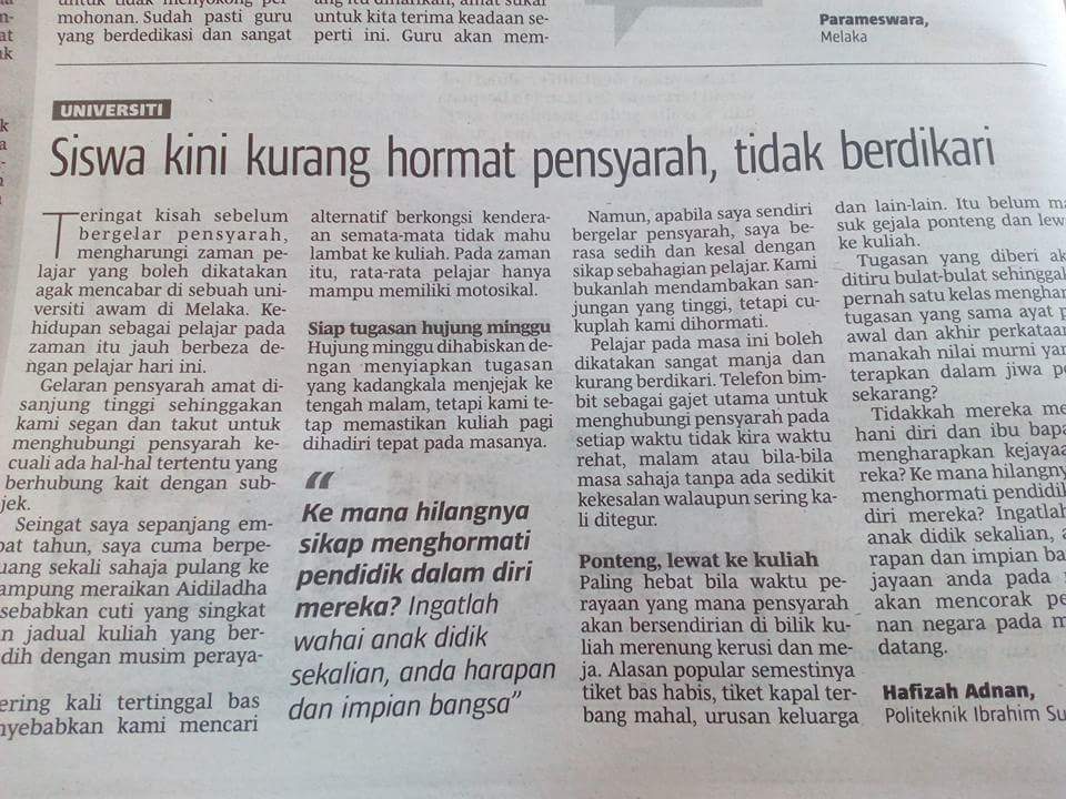 Siswa kini kurang hormat pensyarah…