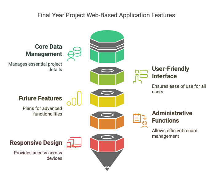 The development of this web-based application marks a significant step towards improving the management and accessibility of student final year project data. By leveraging modern web technologies, the application provides an efficient, user-friendly, and scalable platform tailored to the needs of students, supervisors, and administrators. The decision to focus on core functionalities in the initial version allows for a stable and reliable system while paving the way for future enhancements, such as analytics and data visualization. As the system evolves, it will continue to support data-driven decision-making, streamline administrative tasks, and enhance the overall user experience for the Geoinformatics program at UTM.