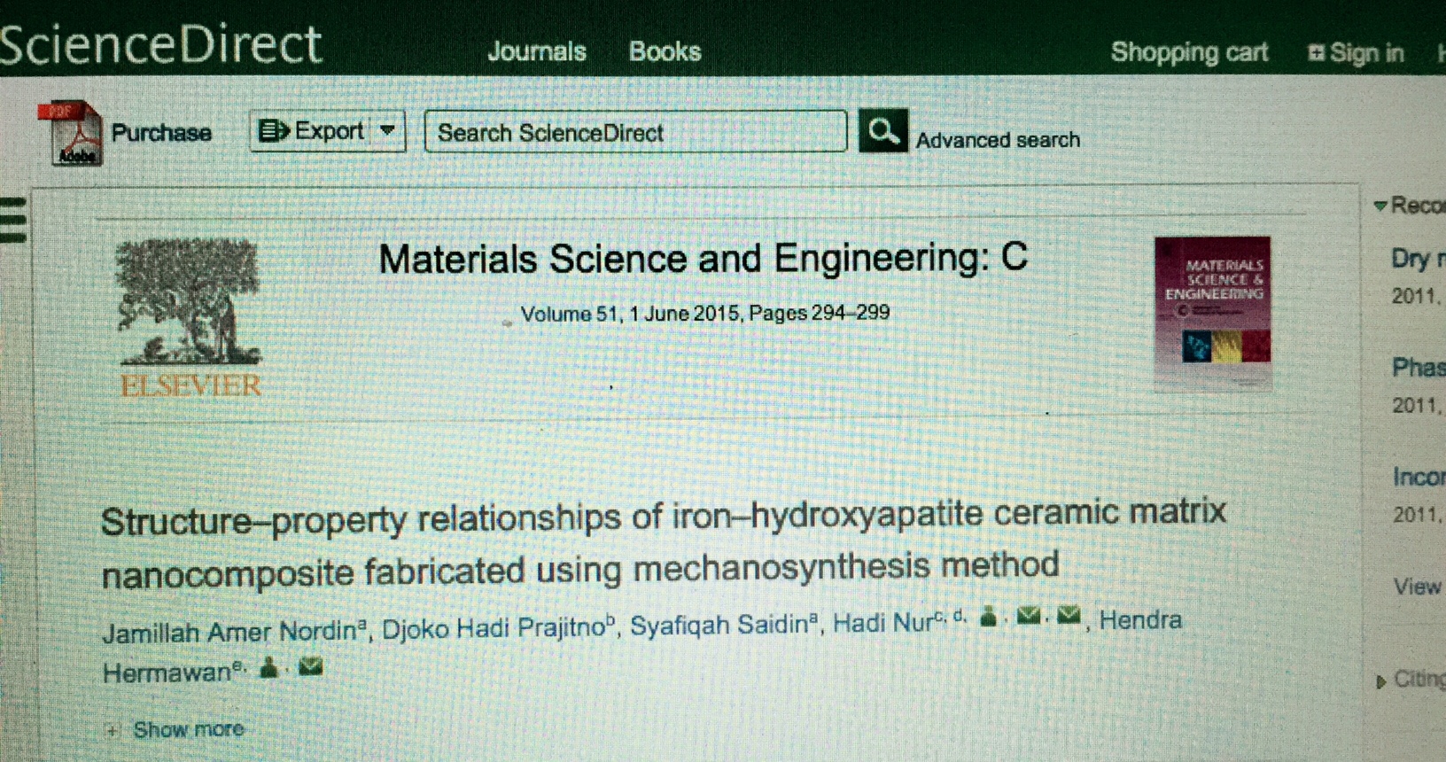 Materials Science & Engineering C : IF = 2.736