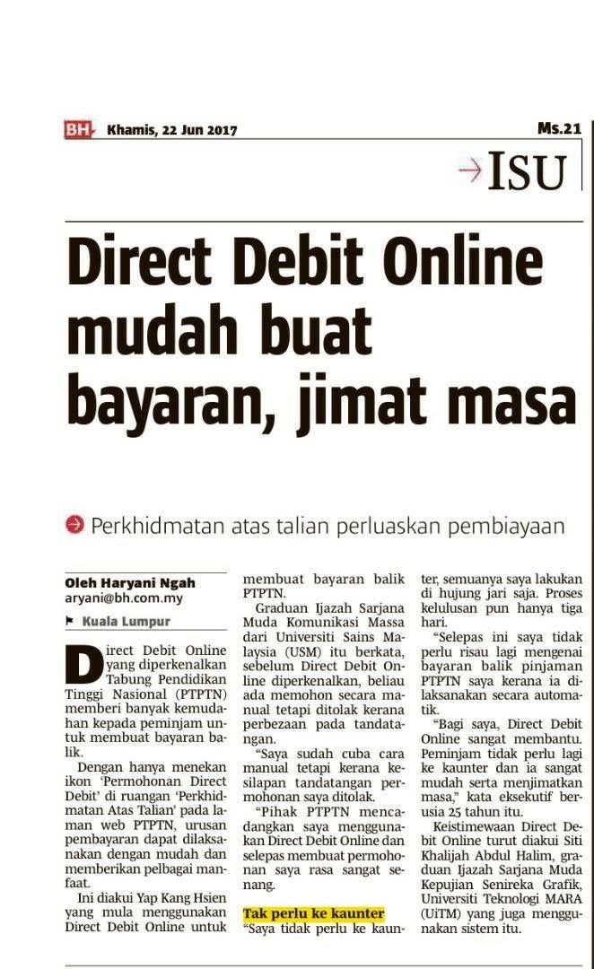 Direct Debit Online untuk Bayar PTPTN